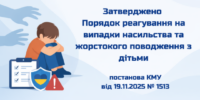 Затверджено Порядок реагування на випадки насильства та жорстокого поводження з дітьми