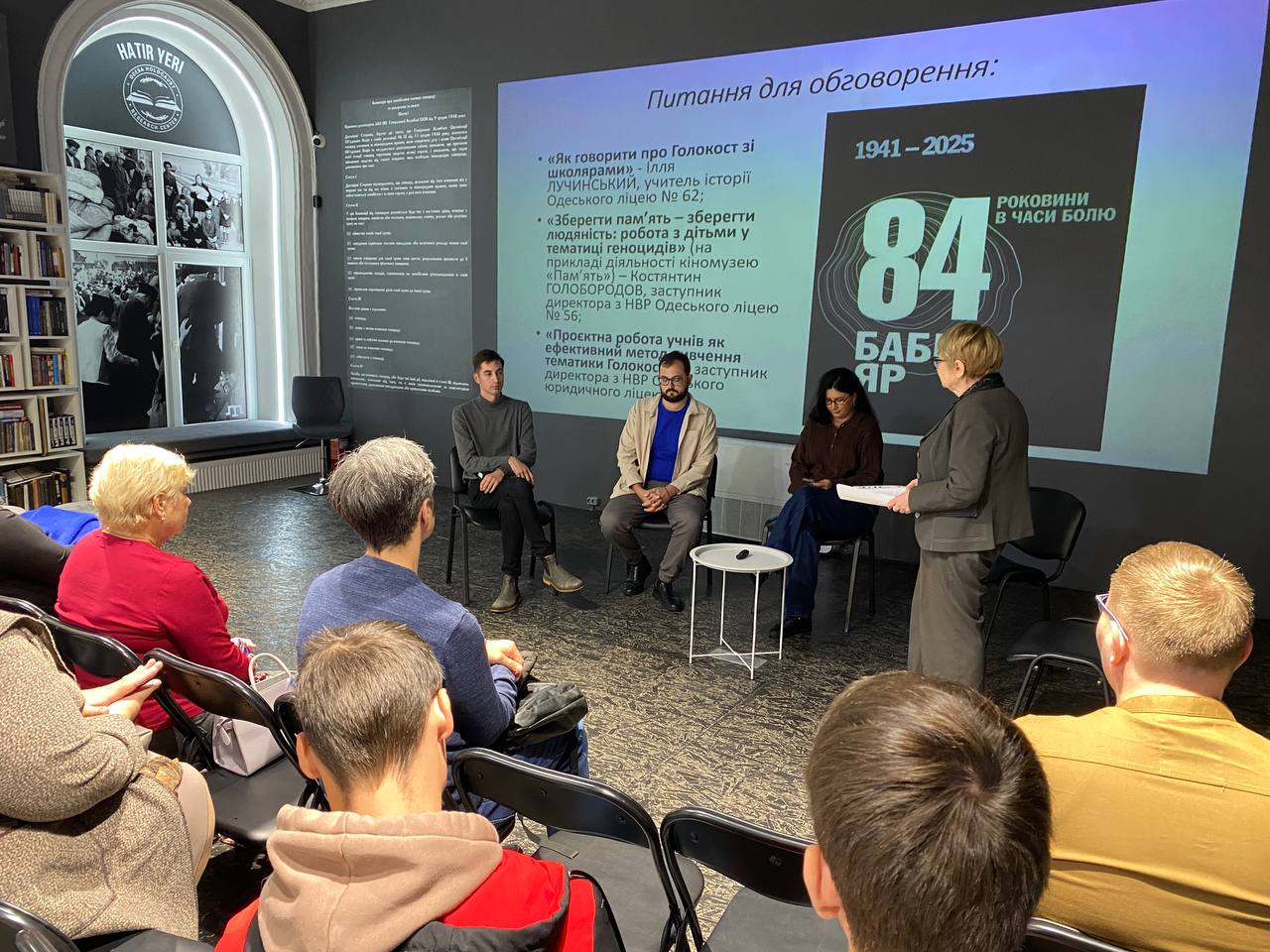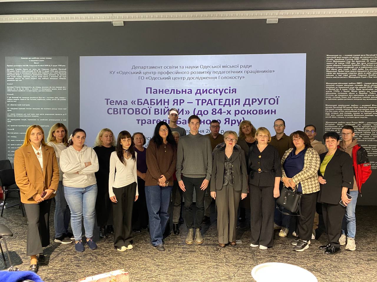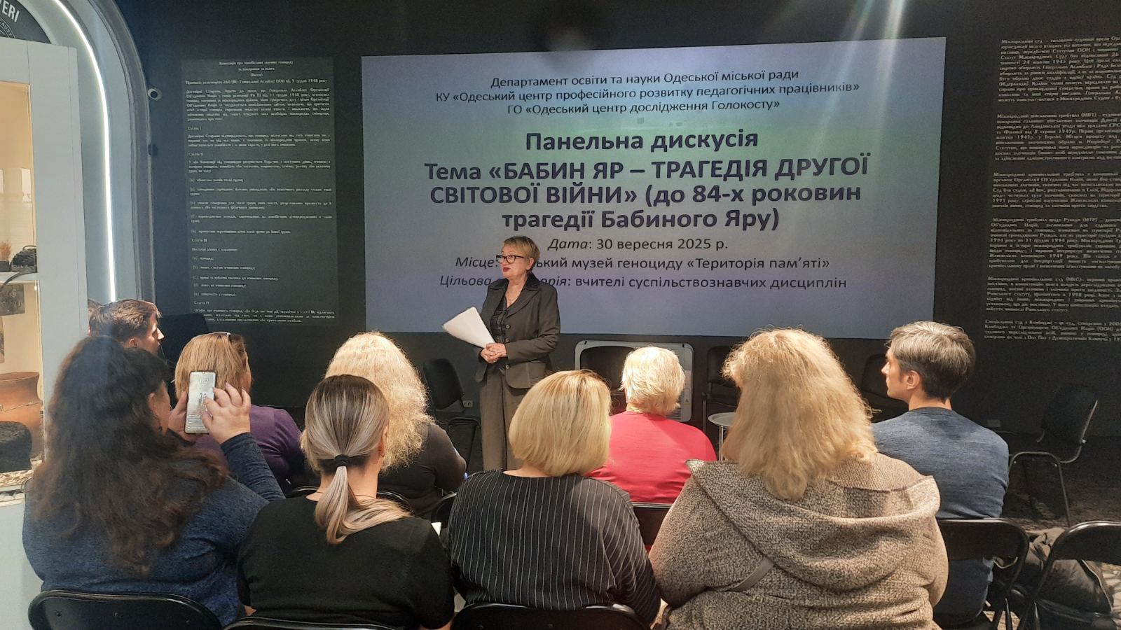 30 вересня 2025 року в Одеському музеї геноциду «Територія пам’яті» за підтримки КУ «Одеський центр професійного розвитку педагогічних працівників» відбулася важлива та змістовна панельна дискусія «Бабин Яр – трагедія Другої світової війни». Захід, орієнтований на вчителів суспільствознавчих дисциплін міста Одеси, був присвячений актуальним питанням викладання тематики Голокосту та геноцидів, а також збереженню історичної пам’яті в нашому місті.