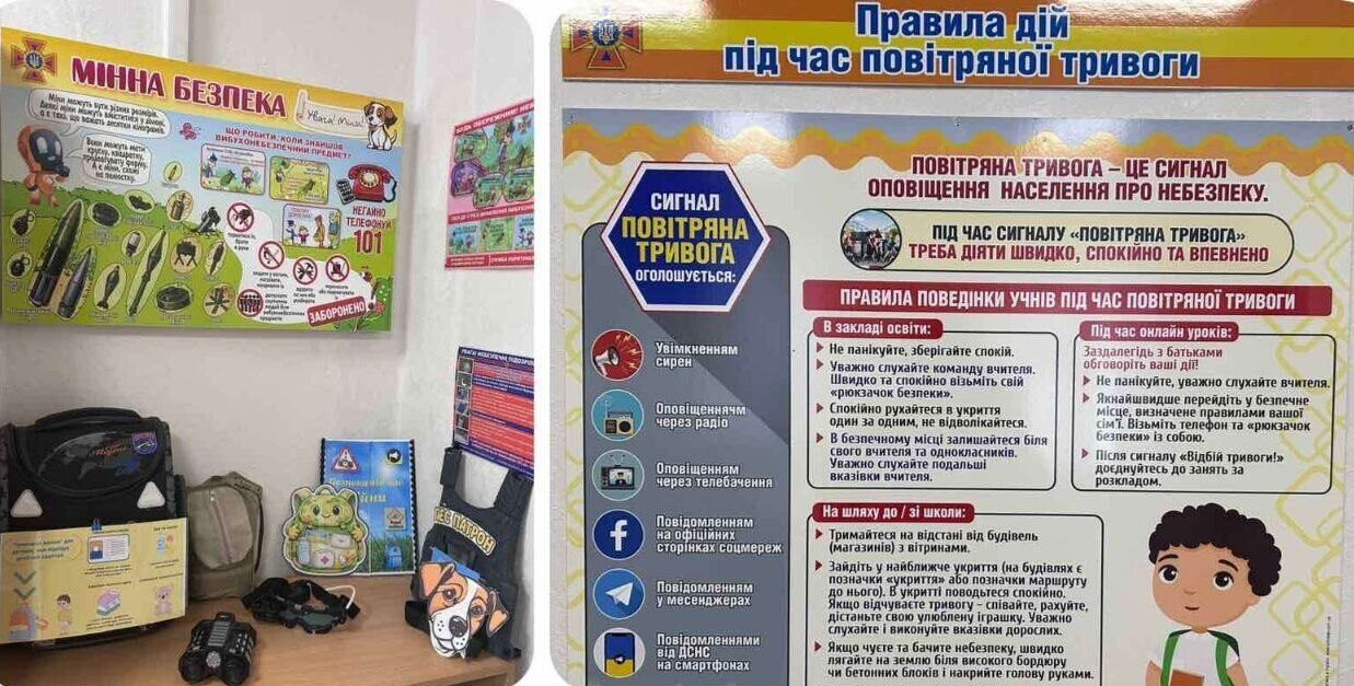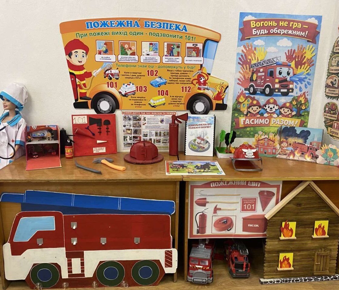 • мінна безпека: за допомогою наочних макетів малюки вчаться розпізнавати небезпечні предмети та пам’ятати головне правило: «Не підходь! Не чіпай! Телефонуй 101!»;