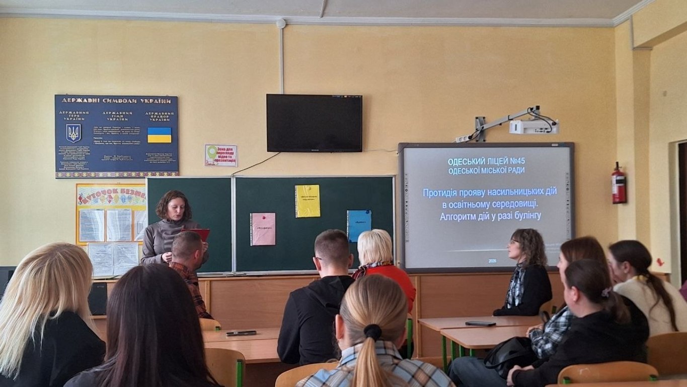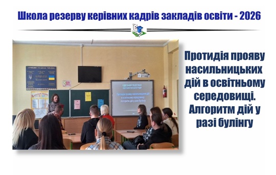 Відповідно до Плану роботи Школи резерву 02 квітня 2026 року для слухачів Школи резерву керівних кадрів закладів освіти м. Одеси на базі Одеського ліцею № 45 Одеської міської ради  відбувся семінар-практикум «Протидія прояву насильницьких  дій в освітньому середовищі. Алгоритм дій у разі булінгу».