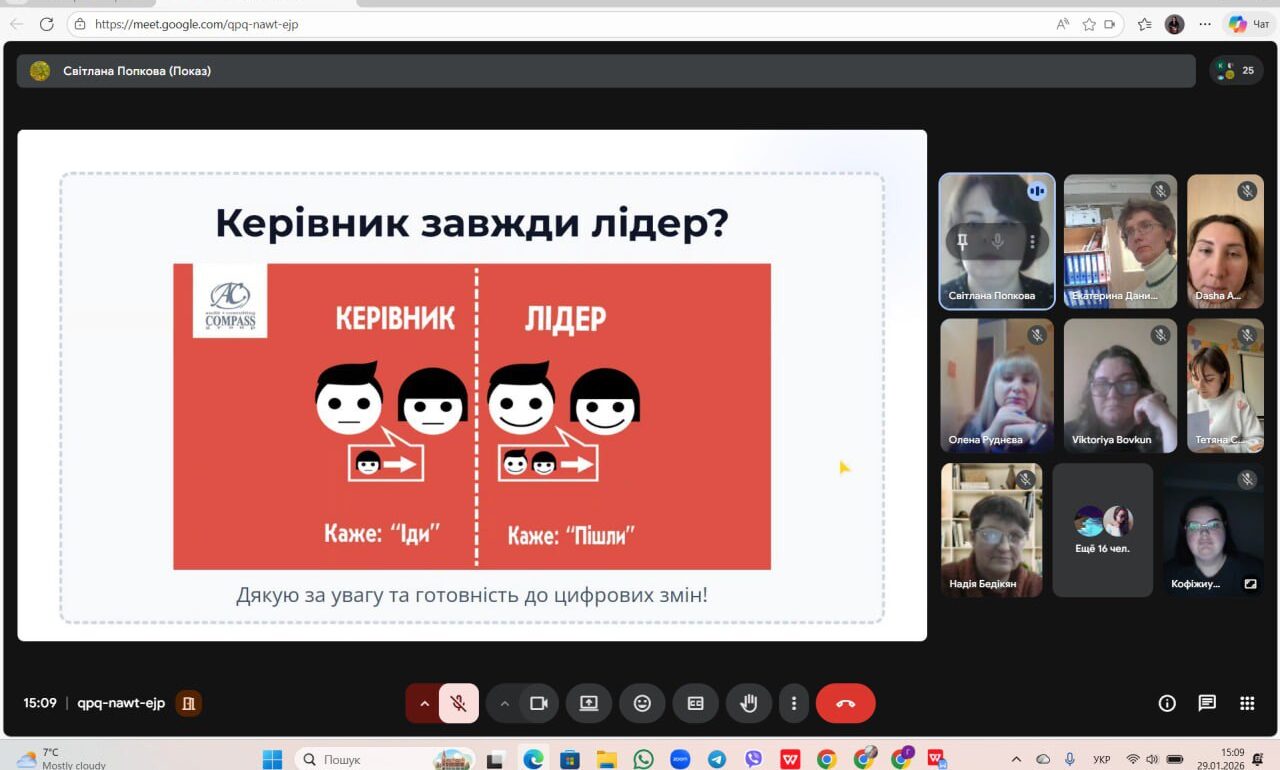 29 січня 2026 року для слухачів Школи резерву керівних кадрів закладів освіти м. Одеси відбувся майстер-клас «Освіта без меж: трансформація через цифровізацію. Простір Google як платформа для підвищення якості викладання предметів під час дії воєнного стану».