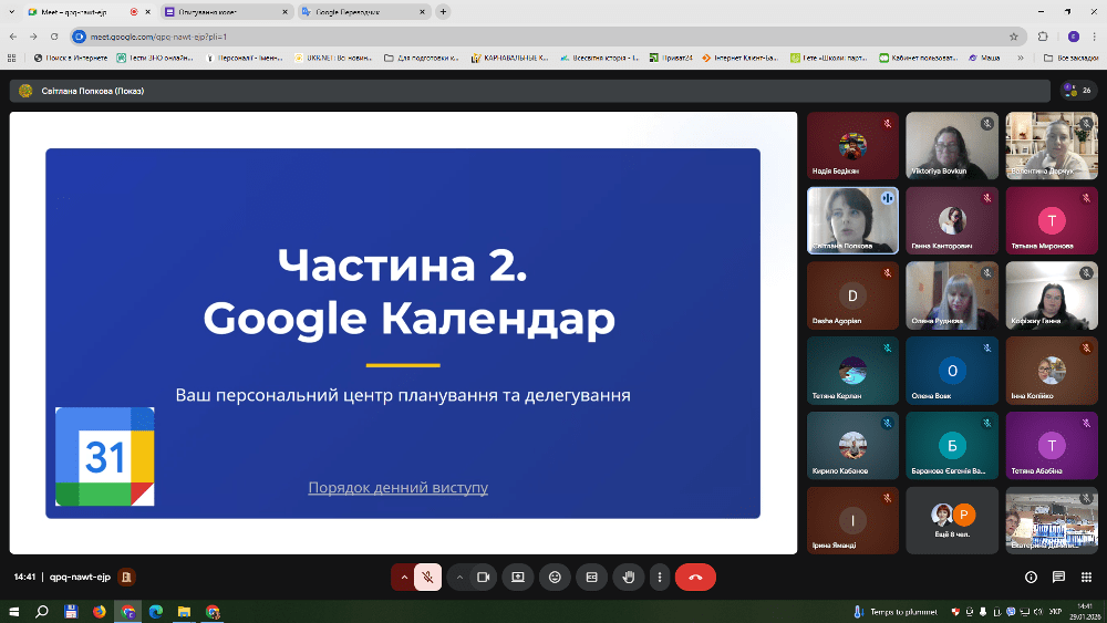 У своєму виступі вона наголосила, що комплекс сервісів Google — Gmail, Google Drive, Google Meet, Google Classroom та інші — дозволяє створити єдину корпоративну мережу, яка забезпечує: ефективну комунікацію між адміністрацією, педагогами, учнями та батьками; Централізоване управління навчальними процесами та ресурсами; прозорий контроль якості освіти завдяки аналітичним інструментам і звітності; безпечне зберігання та обмін даними у захищеному середовищі.